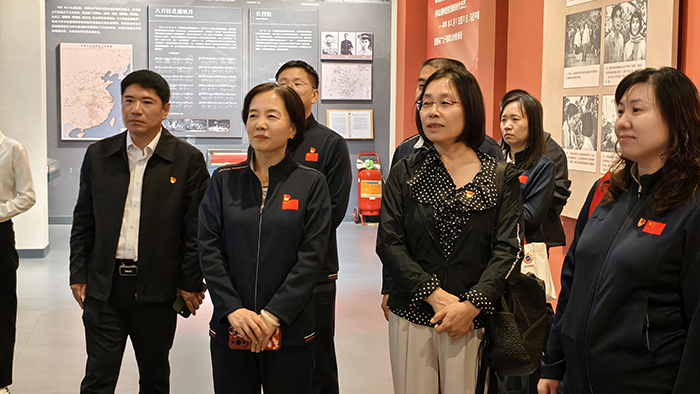 活动中,党员干部首先参观了"没有共产党就没有新中国"革命歌曲纪念馆,接受红色教育,感悟革命精神。馆前的党旗文化广场庄严宏大,960平方米的巨幅党旗格外醒目。展览以"人民的心声 历史的旋律"为主题,突出"歌从史出、以歌颂史"特色,由"党的创建和大革命洪流中的歌声""土地革命风暴中的歌声""为全民族抗战呐喊的歌声""循着解放战争进程的歌声"四个部分构成,运用雕塑、大型投影、场景复原、音像展示等多种形式,生动呈现了210首不同历史时期的革命歌曲,为参观者带来深刻的精神洗礼。参观结束后,全体党员面向党旗,重温入党誓词,表达坚守理想信念、传承革命精神的坚定决心。