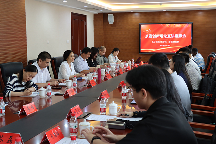 近日,京浙两地在京组织交流研讨活动,共同研讨创新理论宣讲模式、宣讲机制和人才队伍培养。北京市“伟大抗战精神”百姓宣讲团与浙江省“8090”和“00后”新时代理论宣讲团开展宣讲交流观摩活动。院党组成员、副院长,市委讲师团团长肖峻峰主持座谈研讨,我院宣讲业务处室主要负责人,浙江省委宣传部理论处人员、宣讲团领队及宣讲员20多人参加。