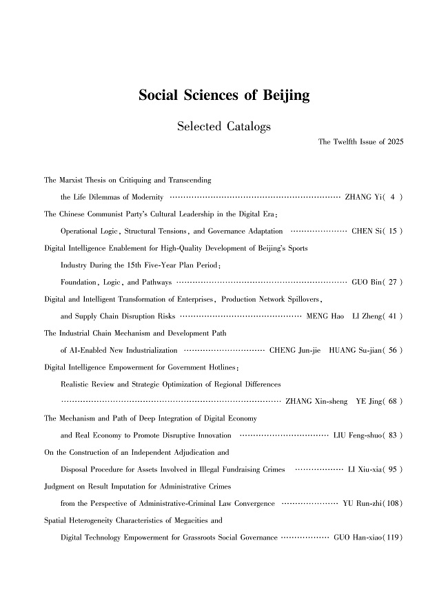 The latest edition of Social Sciences of Beijing (Issue 12, 2025) has been published.