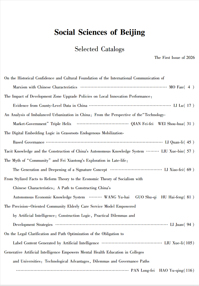 The latest edition of Social Sciences of Beijing (Issue 1, 2026) has been published.
