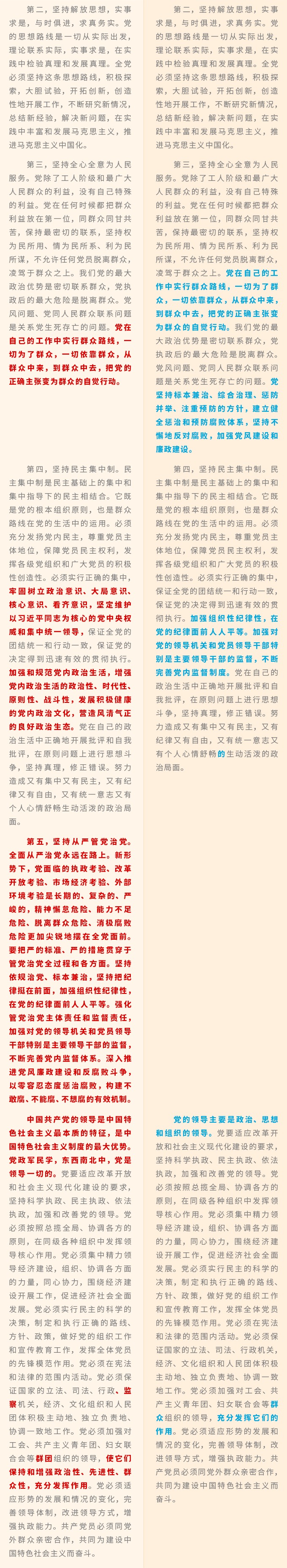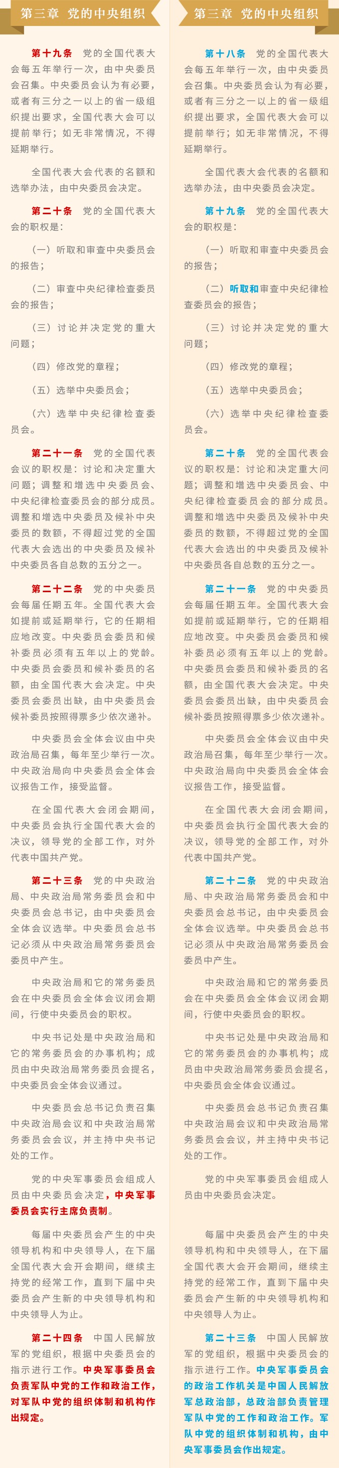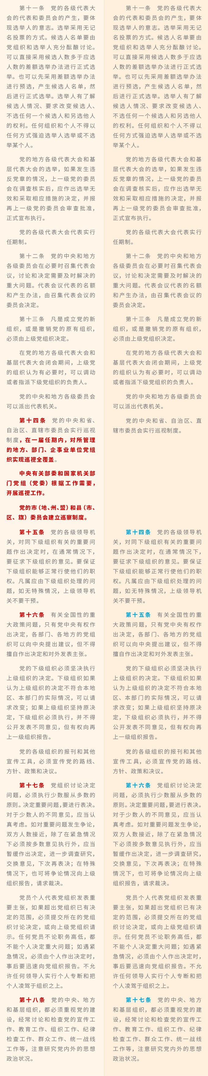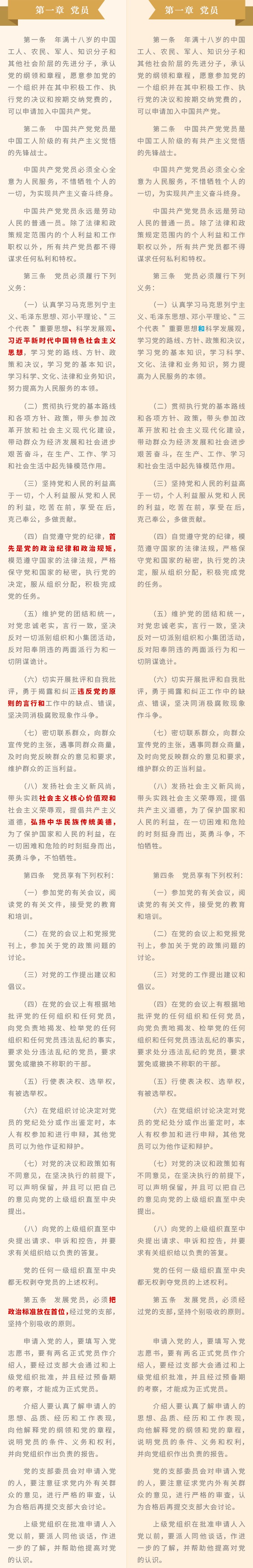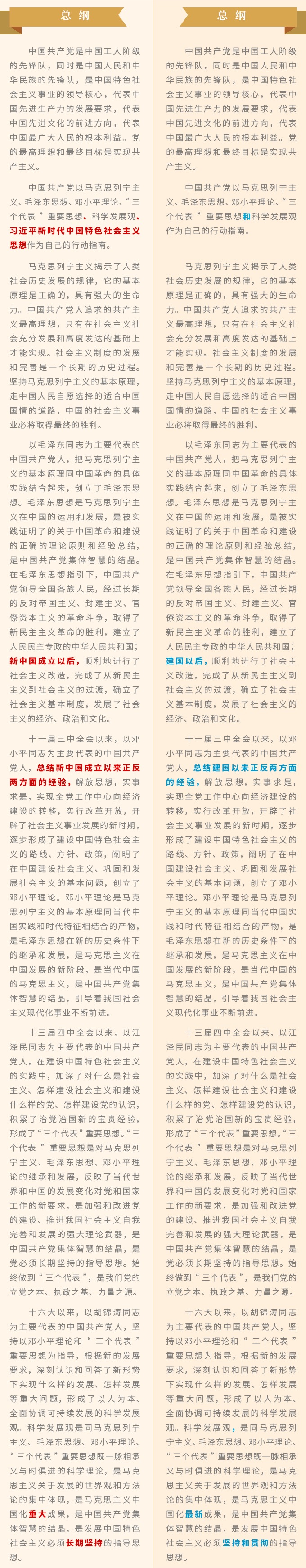 《中国共产党章程》修改对比一览表
