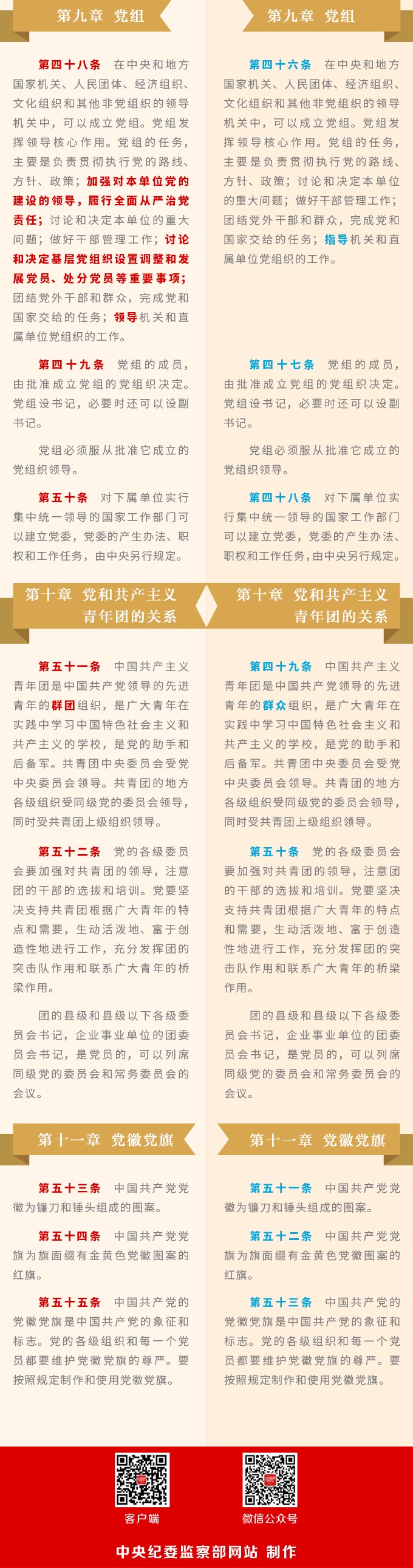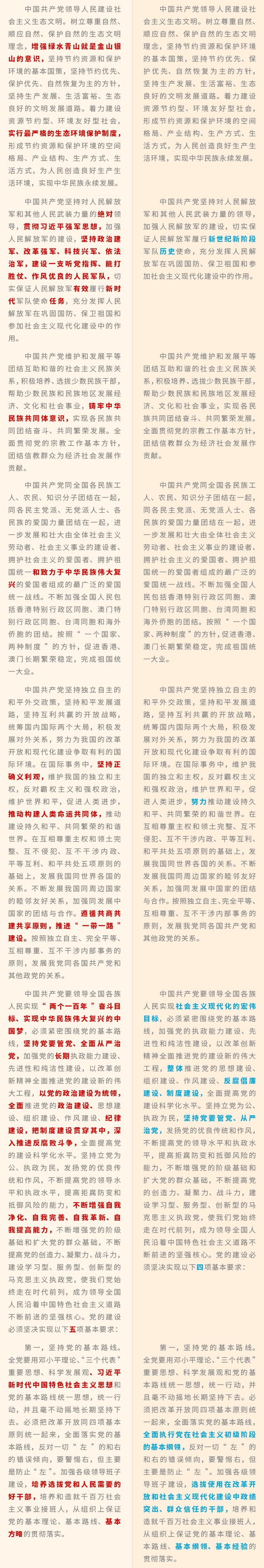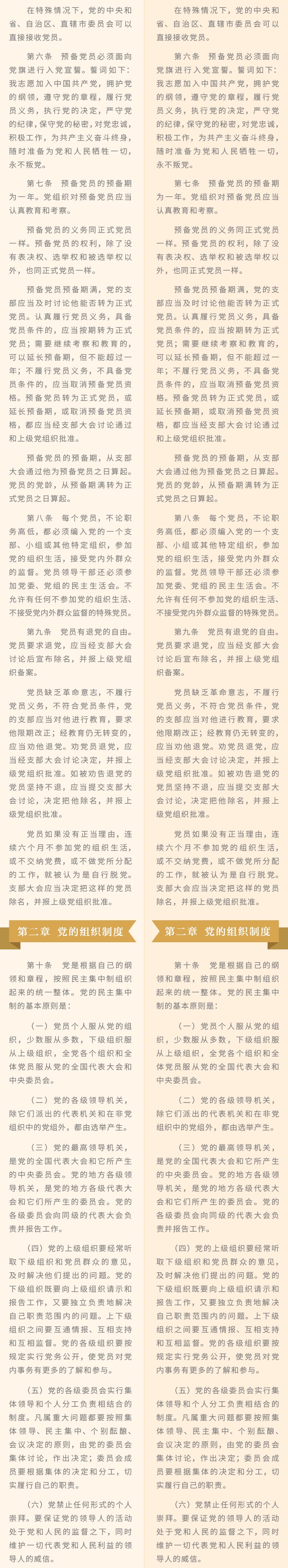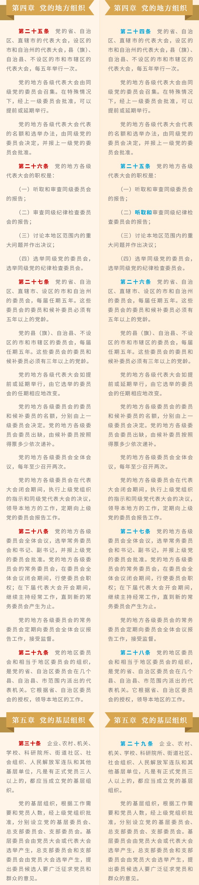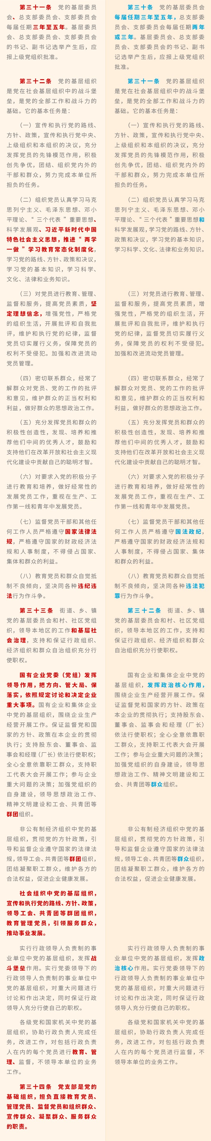 《中国共产党章程》修改对比一览表