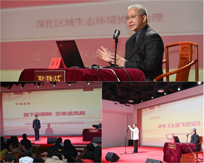 在朝阳区的宣讲活动上,市委党校经济学部的王昊教授围绕《扎实推进首都高质量发展 奋力谱写中国式现代化的北京篇章》这一主题从“京津冀协同发展”“国际科技创新中心建设”“优化营商环境”等方面开展宣讲。宣讲过程中,穿插了百姓宣讲和文艺表演,让抽象的理论阐述更具体更生动。北京城建集团邱雅楠以《京津冀协同发展轨道上的“桥头堡”》为题,讲述建造城市副中心地下综合交通枢纽的故事,让观众们切实体会到京津冀协同发展中交通等基础设施建设的创新发展成果。北京经济技术开发区商务金融局刘跃讲述了开发区坚守初心,打造优质环保招商环境,搭建企业高质量发展平台的故事。评书演员张硕声情并茂地讲述了二十大代表、“巾帼蓝领”韩利萍精益求精为中国航天事业无私奉献的事迹。