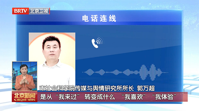 近日,我院传媒与舆情研究所所长郭万超研究员接受北京卫视《北京新闻》采访,围绕“小文创撬动大流量”这一热点现象,就当下观众消费观念的转变、文化需求层次的提升以及博物馆文创如何更好地满足群众新消费观等问题进行了解读。