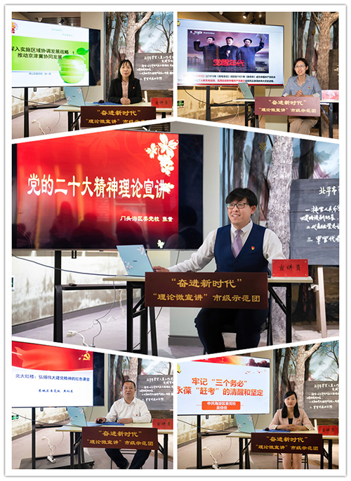 “学习贯彻党的二十大精神‘理论微宣讲’市级示范团”由市委宣传部、市社科院(市委讲师团)联合组建。宣讲团由23名首都高校马克思主义学院、北京市各区委党校青年教师和市社科院青年科研人员组成。宣讲内容围绕弘扬伟大建党精神、乡村振兴、社区治理、生态文明建设、京津冀协同发展、全面从严治党等主题,通过每人15分钟的“理论微宣讲”,以小见大、深入浅出地阐释党的二十大精神,将深邃的理论通俗化、大众化解读,让厚重的理论通俗化轻巧化传播,打通理论宣讲“最后一公里”。