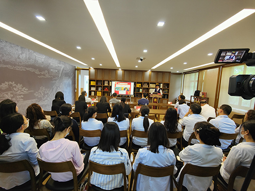 来自东城区委党校的焦向东以《北大红楼:弘扬伟大建党精神的红色课堂》为题,深情讲述北大红楼的感人革命故事,带领大家感悟伟大建党精神。