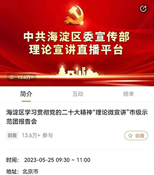5月25日上午,在海淀区圆明园书院,40余名党员干部群众到场聆听宣讲报告,近14万人次党员干部通过海淀区委宣传部理论宣讲直播平台在线学习。