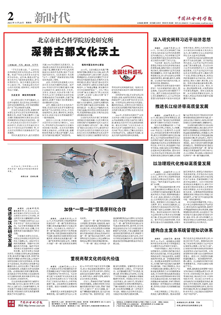 11月23日,《中国社会科学报》“全国社科巡礼”栏目报道介绍我院历史研究所。文章指出,近年来,随着北京“全国文化中心”建设使命的提出,北京市社会科学院历史研究所勇于担当,致力于服务全国文化中心建设工作,为推进全国文化中心的历史挖掘、成果转化、科普宣传作出了贡献。
