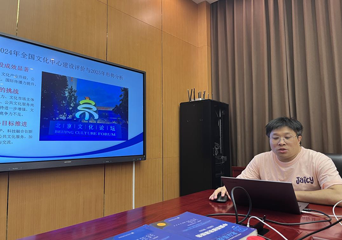 我院文化研究所沈望舒研究员作题为《当强化首都学之“硬核力量”——首都文化的功能研究》的主题发言。沈望舒研究员认为,首都文化是首都学的“硬核力量”,既承载深厚历史传统,也塑造新时代的精神高地,既承载着七十万年北京史与五千年京师传统的文明基因,又在新时代形成精神文化型高地,为优化国家治理体系提供了兼具历史纵深与实践创新的理论框架。