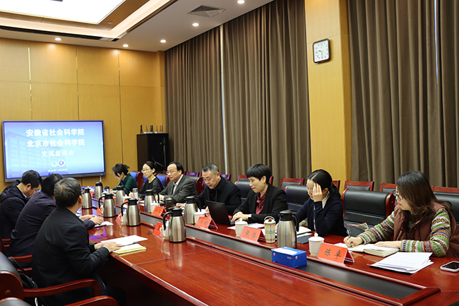 12月29日上午,安徽省社会科学院党组成员、副院长沈天鹰一行来我院调研座谈。我院党组成员、副院长鲁亚主持座谈会,安徽省社会科学院办公室、科研处、人事处负责人,我院科研组织处、智库建设与管理处、人事处负责人及办公室、财务处相关人员参加座谈。