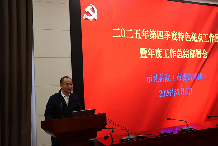 2026年2月6日上午,我院组织2025年第四季度宣传宣讲特色亮点工作展示暨年度工作总结部署会,院党组成员、副院长、市委讲师团团长肖峻峰,局级干部季英勇出席。