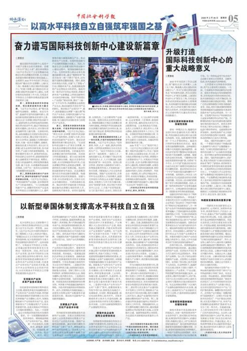 《中国社会科学报》刊发我院党组副书记、院长贺亚兰研究员理论文章《奋力谱写国际科技创新中心建设新篇章》