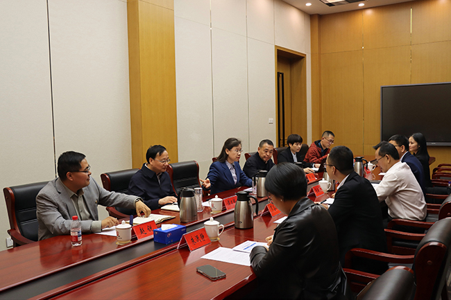 3月27日下午,广州市社会科学院党组书记、院长张跃国带队来我院就持续推动新型智库建设、高质量服务地方经济社会发展进行调研。我院党组书记谢辉会见调研组一行,党组副书记、院长贺亚兰主持调研座谈会,党组成员、副院长鲁亚及双方相关部门同志参加座谈会。