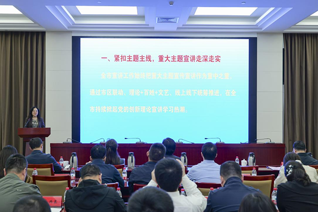 市社科院党组成员、副院长、市委讲师团团长肖峻峰作2025年全市理论宣传宣讲工作总结并部署2026年重点工作。各区各系统单位宣传部门有关负责同志、全市理论宣讲实践单位负责同志、部分基层宣讲员代表参加会议。