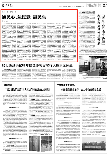 其次,“一带一路”民心相通建设形成了多元立体的人文交流格局。十年来,中国与共建国家广泛开展教育、科学、文化、旅游等领域合作,共同打造了一系列优质品牌项目,真正实现了通民心、达民意、惠民生。比如,丝绸之路(敦煌)国际文化博览会、丝绸之路国际艺术节、“天涯共此时”“中国青年全球伙伴行动”等品牌深受欢迎。与此同时,民心相通建设合作开展了一系列旨在增进民生福祉的“小而美”项目。“丝路一家亲”“鲁班工坊”“光明行”等民生项目在多国落地落实,深受民众欢迎的乡村减贫推进计划、减贫示范合作技术援助等项目在亚洲、非洲、南太平洋、拉美和加勒比等地区扎实推进,中巴急救走廊建设、非盟非洲疾病预防控制中心总部、巴基斯坦瓜达尔博爱医疗急救中心等项目顺利实施,杂交水稻、菌草、玉米等种植实用技术广泛交流应用,有力推动了共建“一带一路”倡议落实落地、深入人心。