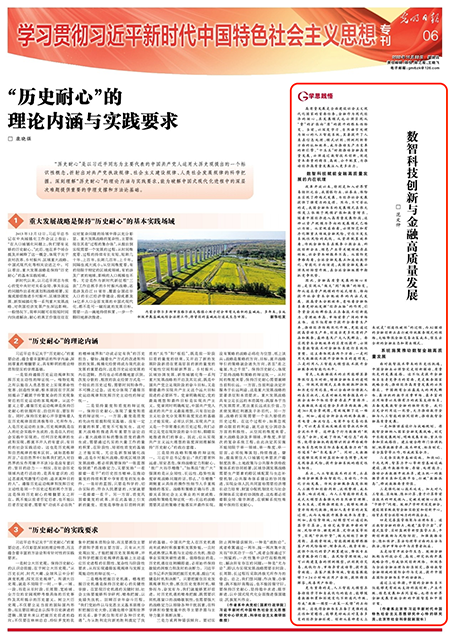 高质量发展是全面建设社会主义现代化国家的首要任务,金融作为现代经济的核心,其发展模式也必须实现从“量”的扩张向“质”的提升的根本性转变。当前,以深度学习、自然语言处理为核心的人工智能系统,显著提升了人类在信息处理、模式识别、预测判断等方面的认知效率,成为推动生产力变革的新引擎。“十五五”时期推动金融高质量发展,必须通过数智技术创新,促进资本要素的精准、高效、公平配置,为推动经济高质量发展注入更多活力。