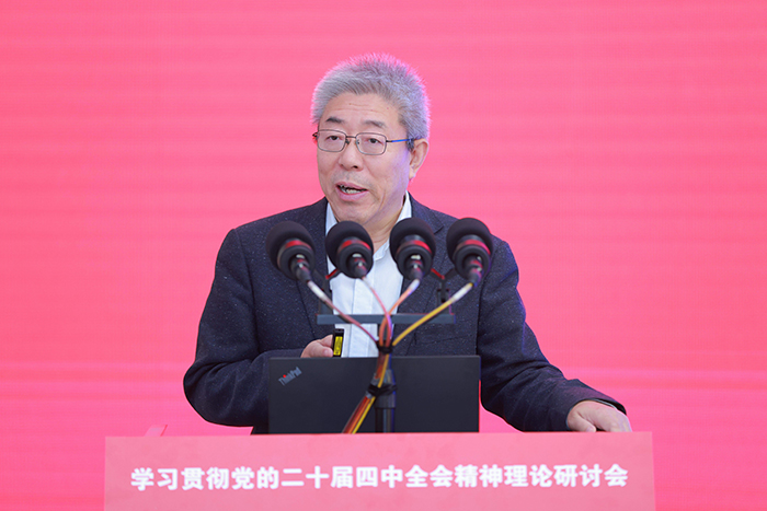 谢辉在致辞中强调,学习贯彻党的二十届四中全会精神是当前和今后一个时期的重大政治任务。他回顾了北京市社会科学院今年以来在理论研究阐释、咨政建言和主题宣传宣讲方面取得的成绩,期待与会专家学者深入交流、凝聚共识,为实现强国建设和民族复兴贡献力量。