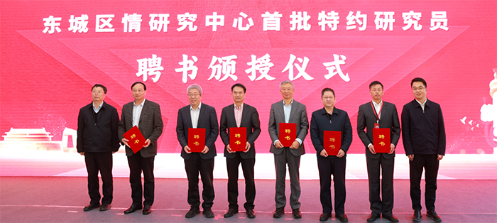 会议还举行了北京市社会科学院与北京市东城区委党校共建智库调研基地揭牌仪式和东城区情研究中心首批特约研究员聘书颁授仪式。孙新军、谢辉、贺亚兰、王达品等领导共同为智库调研基地揭牌,北京市委党校副校长袁吉富、北京市东城区委常委、宣传部部长王智勇等领导为首批6名特约研究员颁发了聘书。